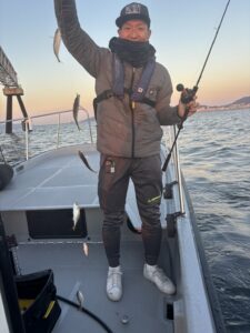 潮が反転してからノマセ をしましたが、こちらはハマチがコンスタントに当たってくれました。